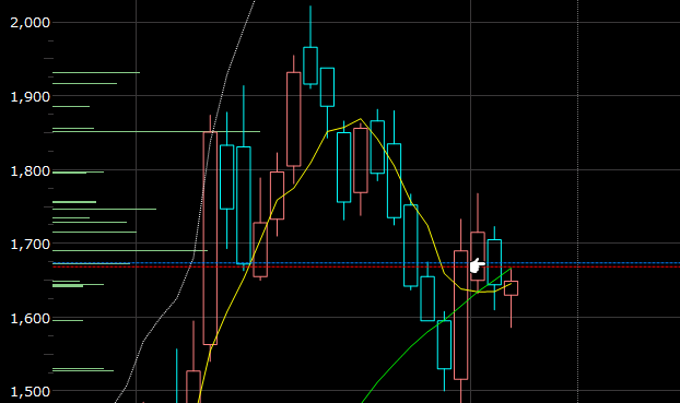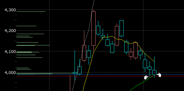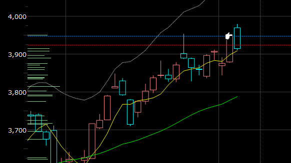 押し目日足。悲しみの全も。部分利確も大事かも…。